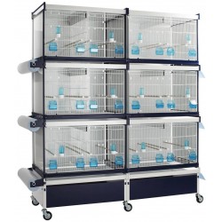 Modello Iris (ART.80) gabbia con frontale divisibile in 2 parti, 4 porte per mangiatoia esterna, 2 porte per mangiatoia interna, 2 porte di entrata e 2 porte alte per il nido. Montaggio senza viti.